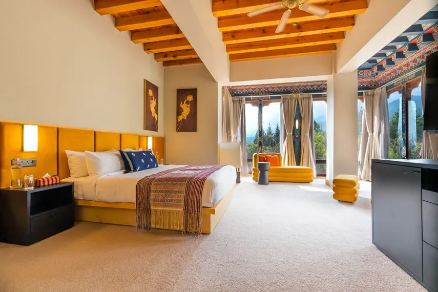 As evening comes, dive into Bhutanese elegance by donning a traditional costume, then let yourself be carried away by a vibrant cultural show, where music and dance tell the kingdom’s story. The day ends on a refined note with a dinner at the hotel, in a warm and authentic atmosphere.